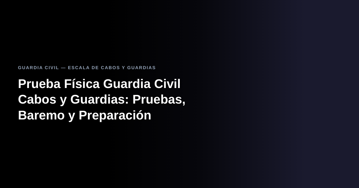 Las pruebas físicas de la oposición de Guardia Civil para la Escala de Cabos y Guardias están reguladas por la convocatoria oficial y se realizan en un único día. Los ejercicios evalúan capacidades como la fuerza, la resistencia aeróbica, la velocidad y la agilidad. Es imprescindible superar cada prueba por encima de la marca mínima para continuar en el proceso.
