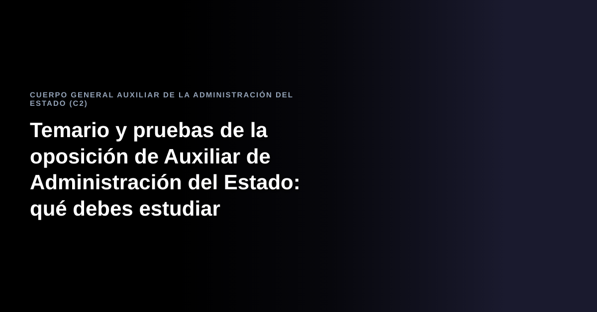 El Cuerpo General Auxiliar de la Administración del Estado (C2) es una de las oposiciones con mayor número de aspirantes en España cada año. Ofrece estabilidad laboral, buen salario y la posibilidad de trabajar en cualquier ministerio u organismo público del país. Si estás pensando en presentarte, lo primero que necesitas es tener claro qué se examina y cómo funciona el proceso selectivo.