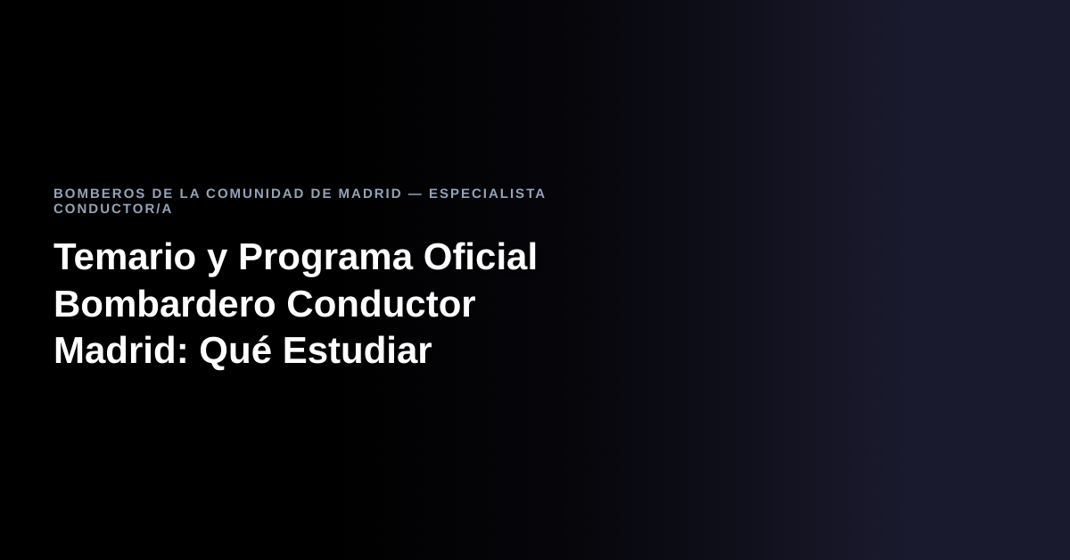 La oposición de Bomberos de la Comunidad de Madrid para la especialidad de Conductor/a es una de las más demandadas del sector de seguridad pública en España. Conocer en detalle el temario bomberos Madrid conductor es el primer paso imprescindible para organizar tu estudio y no perder tiempo con contenidos que no entran en el examen.